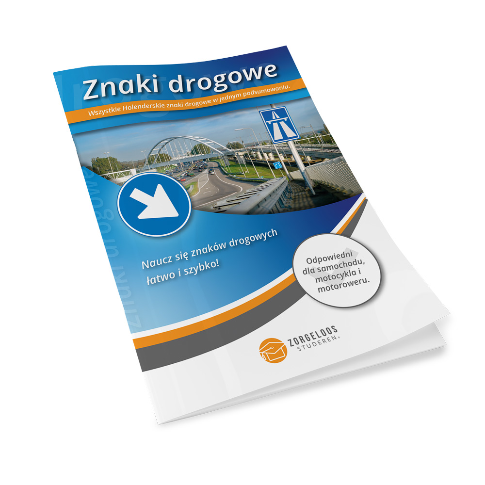 Ten tweede ontvang je een verkeersborden boekje. Hierin staan alle verkeersborden vermeld. Naast de wettelijke omschrijving, ontvang je ook een uitgebreide toelichting. Hierin staat welk gedrag er van jou als verkeersdeelnemer wordt verwacht bij het zien van het betreffende verkeersbord. Je kunt dit boekje gemakkelijk naast het auto theorie boek in het Pools gebruiken. Leren voor je CBR auto theorie examen doe je dus met dit auto theorie pakket in het Pools van Zorgeloos Studeren!