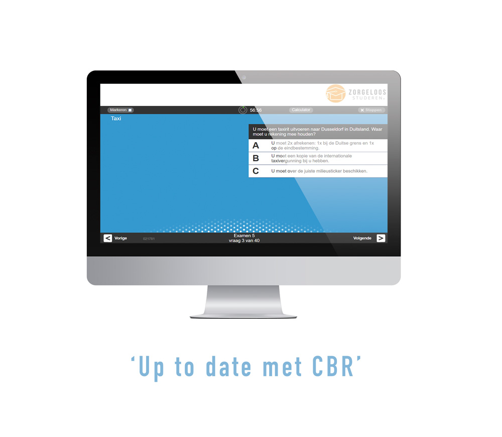 Naast het taxi vakbekwaamheid theorie boek ontvang je ook een digitale Toegangscode per e-mail. Met deze Toegangscode kun jij een Online Oefenaccount aanmaken op onze website. Je kunt hiermee 7 uur taxi theorie oefenexamens maken. Door veel te oefenen ga je goed voorbereid naar het CBR taxi theorie examen.